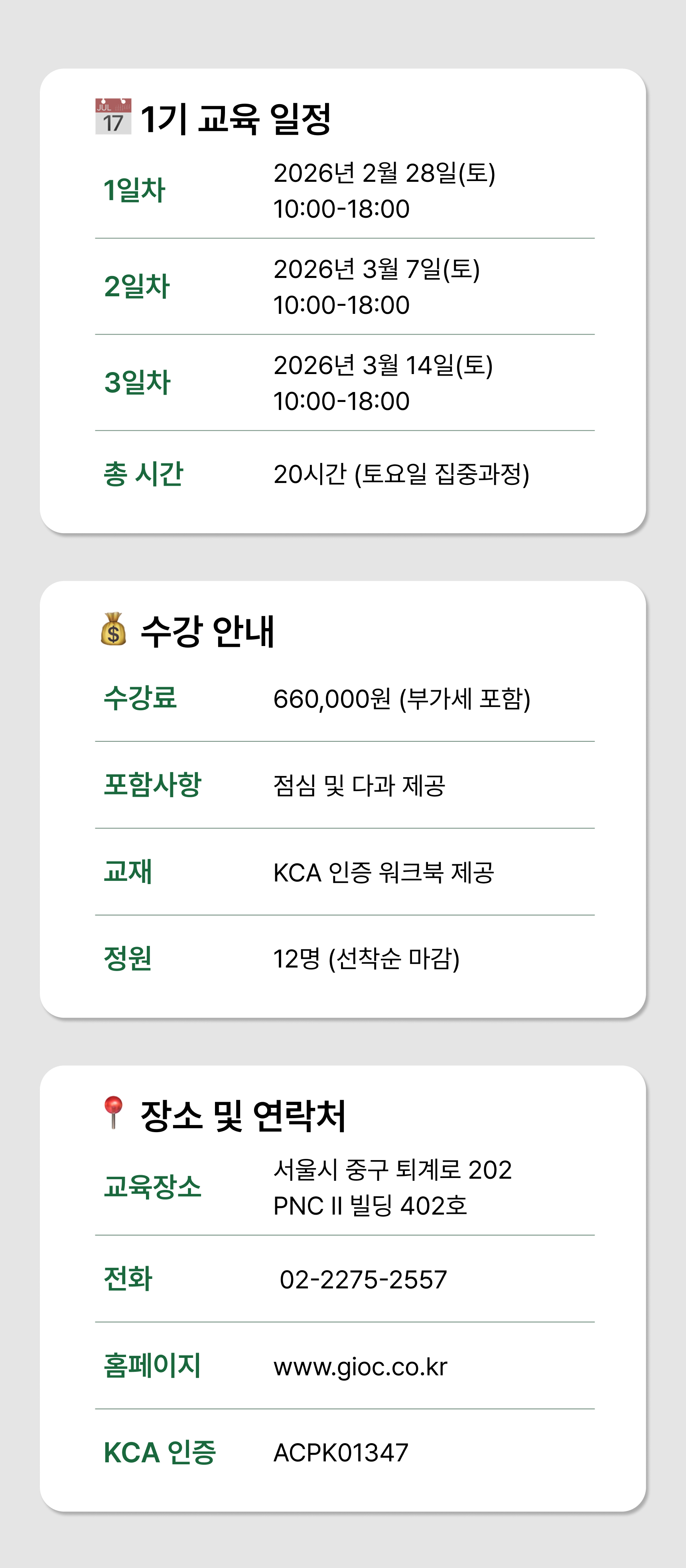- 교육 시작 1일 전 이후 또는 당일 취소 시: 환불 불가